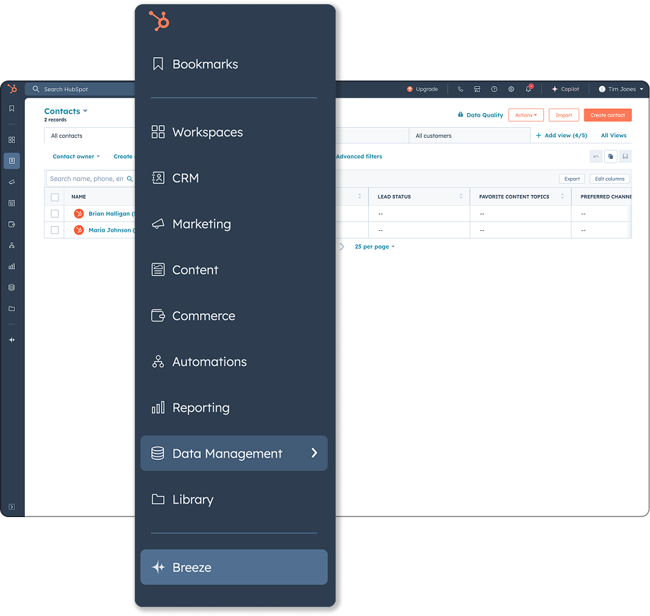 In 2024, as the main navigation team was working on a rethink of HubSpot’s navigation hierarchy and user experience, I partnered with them and each of the product groups represented on the home page. We developed a cleaner, clearer icon set for our customers that also introduced some of the new visual language coming in the next version of the design system.